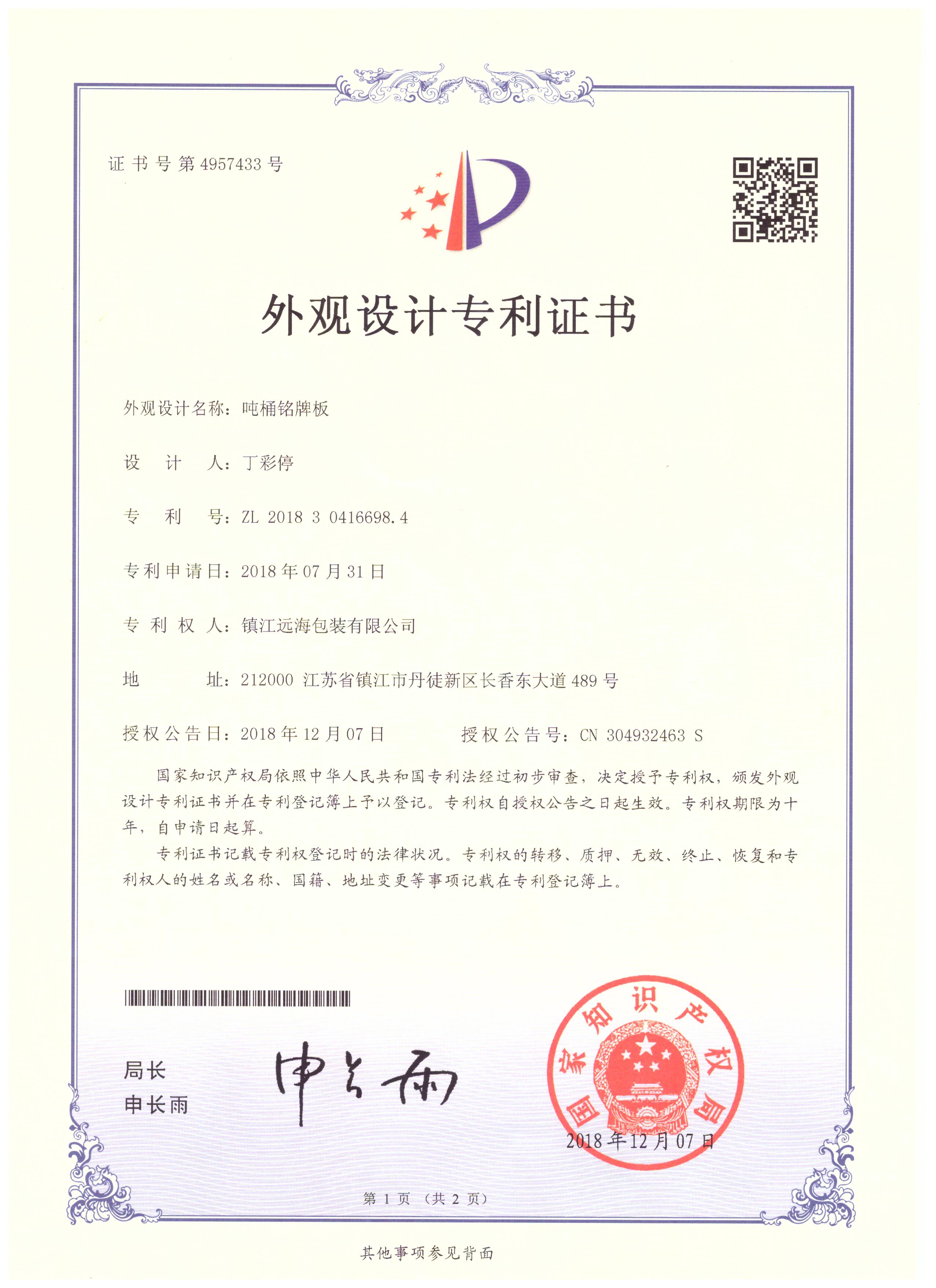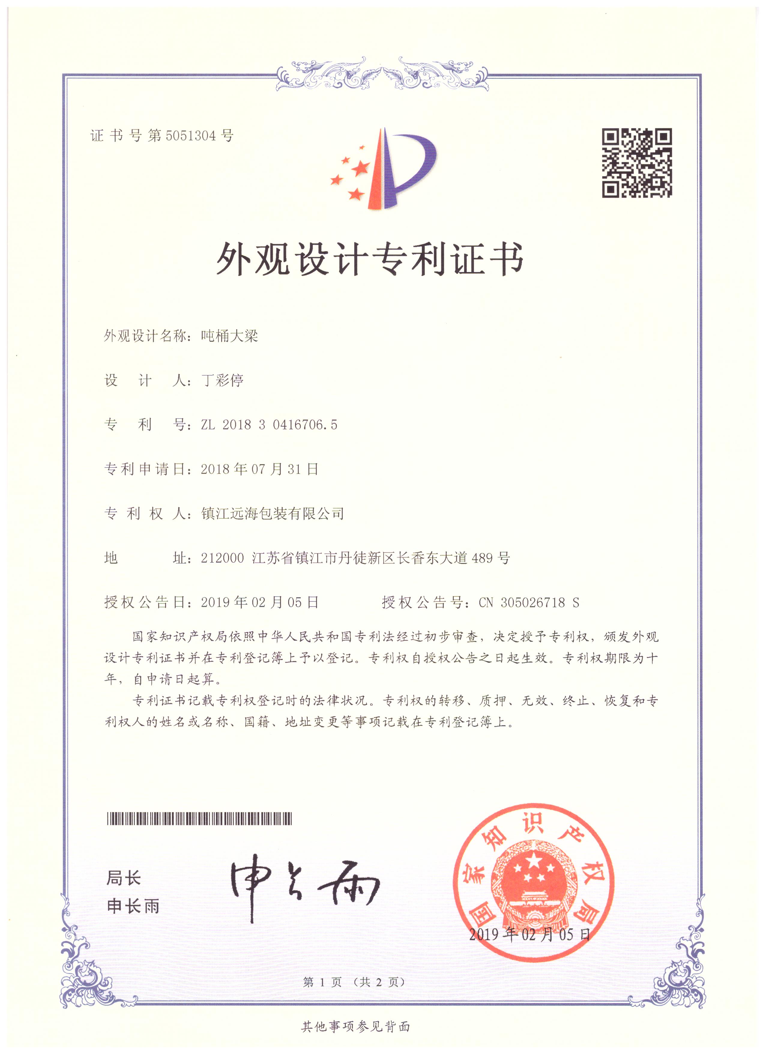 鎮江遠海包裝有限公司成立于2014年8月,是一家專注于生產IBC噸桶及零配件的企業,主要產品有各種型號的底板、橫梁、底角、標牌、鍍鋅焊管等。公司擁有相關產品的外觀型和實用型8項專利。